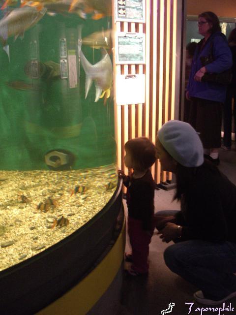 For those not in the know, the Steinhart Aquarium in GGPark had temporarily relocated to a space near the Metreon so that redesigns and renovations could be made to their GGPark home. Well, last week all the penguins, fish and creepy crawlers had to pack up a move back home. Since it would be a few months since the aquarium would reopen, we decided to check out the place before everyone packed up. (Of course, Mads had been there already with her day care group.) Little did S & I know that Mads was an old pro at the aquarium! Not that she could say humuhumunukunukuapua’a (reef triggerfish, for all us others), but she just loves standing at the tanks watching them swim about.