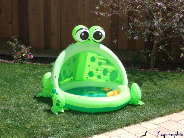 Seeing that Mads likes to splash around in the bathtub…and to our dismay, Lucie’s waterbowl, we naturally thought that she’d enjoy a wading pool. She splashed around alright, but do you think she took one step into the wading pool? Of course not. She threw her beach toys into the pool and made big splashes from kneeling over the edge of the pool and, yah, that was about it.