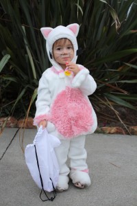 Last Friday, as you know, was Halloween. And, as expected miss Mads…um, preferred not try on her costume at home. So I packed it up, brought it to day care with us and wished them luck. And, as expected, she went willingly into her costume.